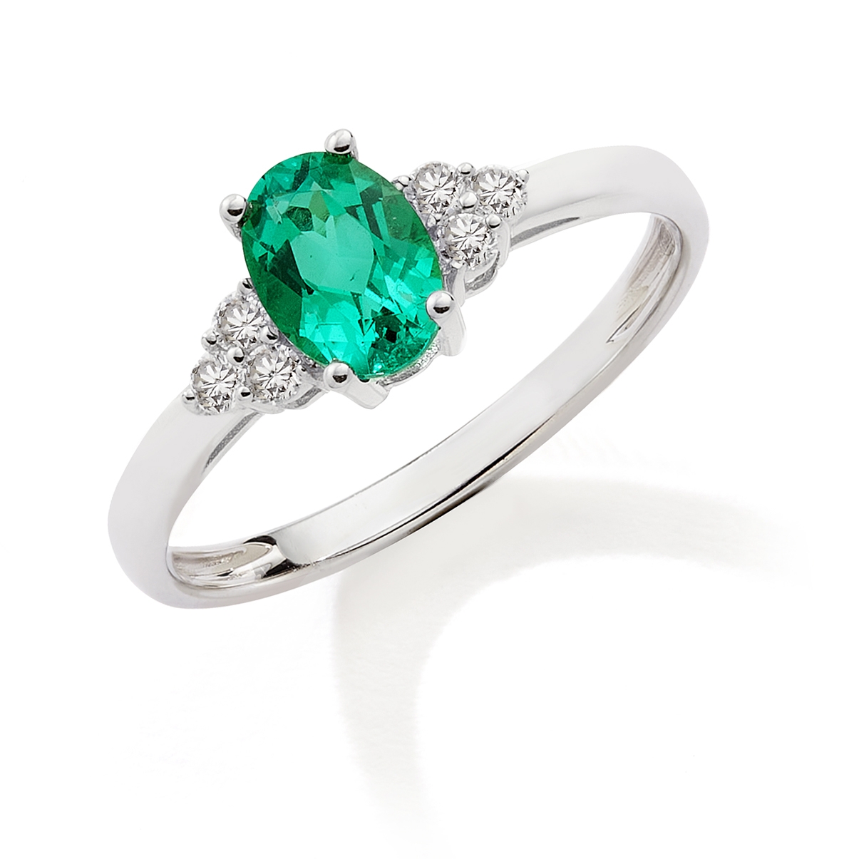 1 émeraude 5x7 0,75 ct, 7 diamants 0,168 ct