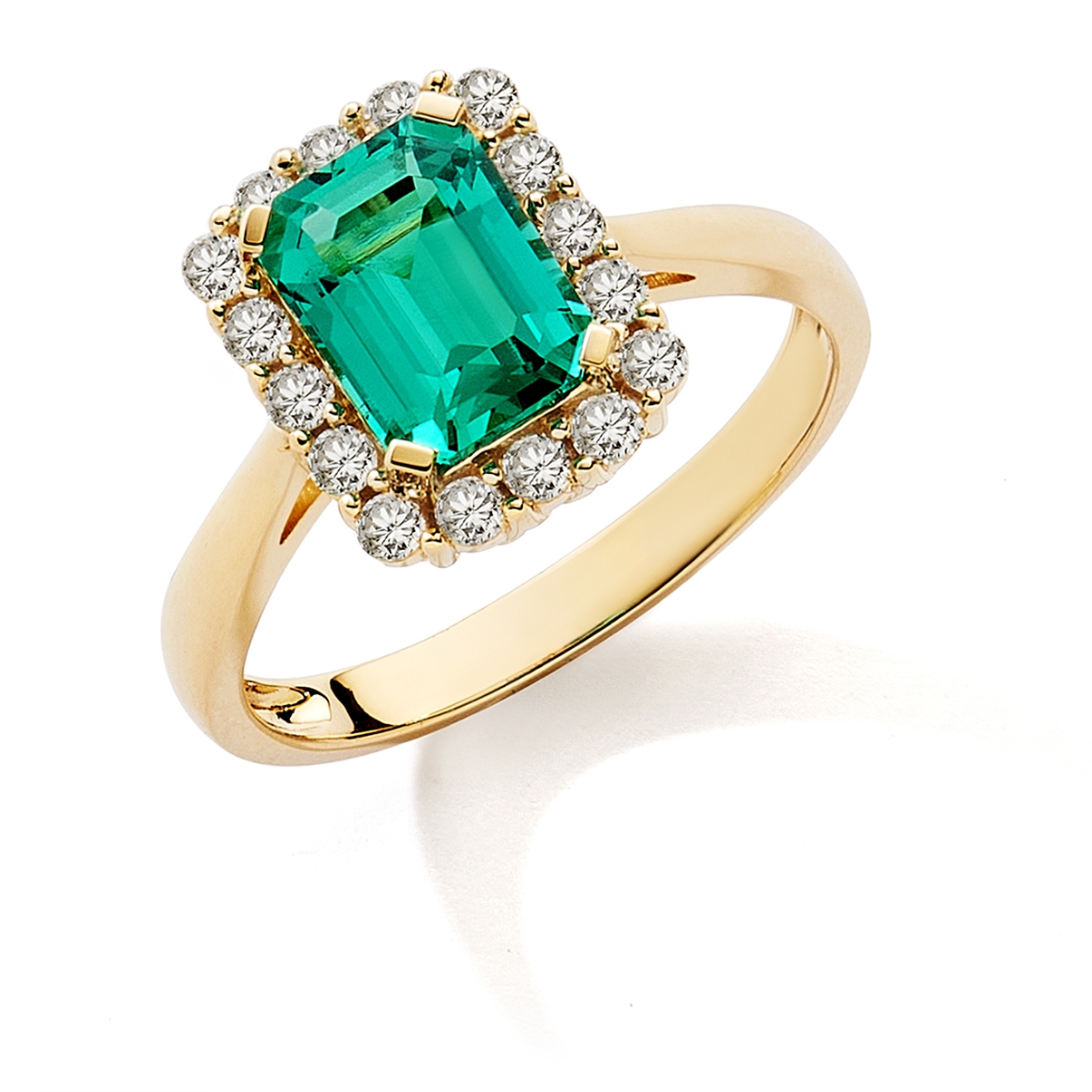 1 émeraude 6x8 1,56 ct, 16 diamants 0,448 ct