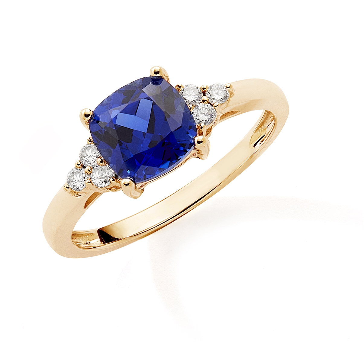 Bague 750 or jaune 1 saphir 7x7, 6 diamants