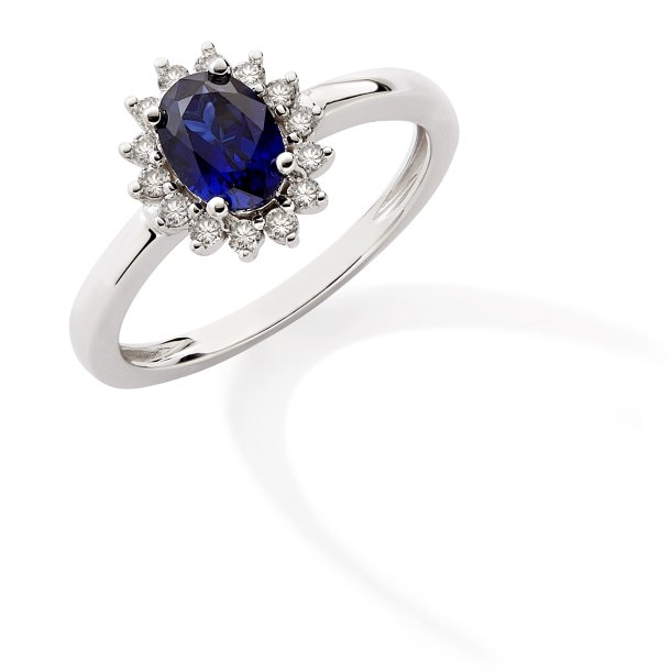 BAGUE OR 375 BLANC SAPHIR OVAL (5x7) – 1,12 CT + 14 DTS 0,26 CT