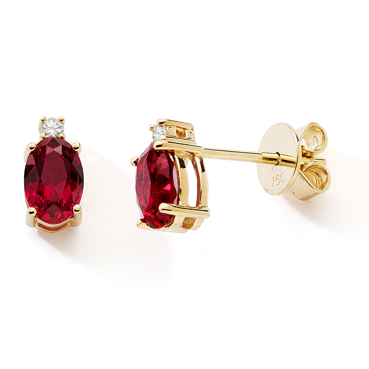 Boucles d’oreilles 750 or jaune 2 rubis 4x6, 2 diamants