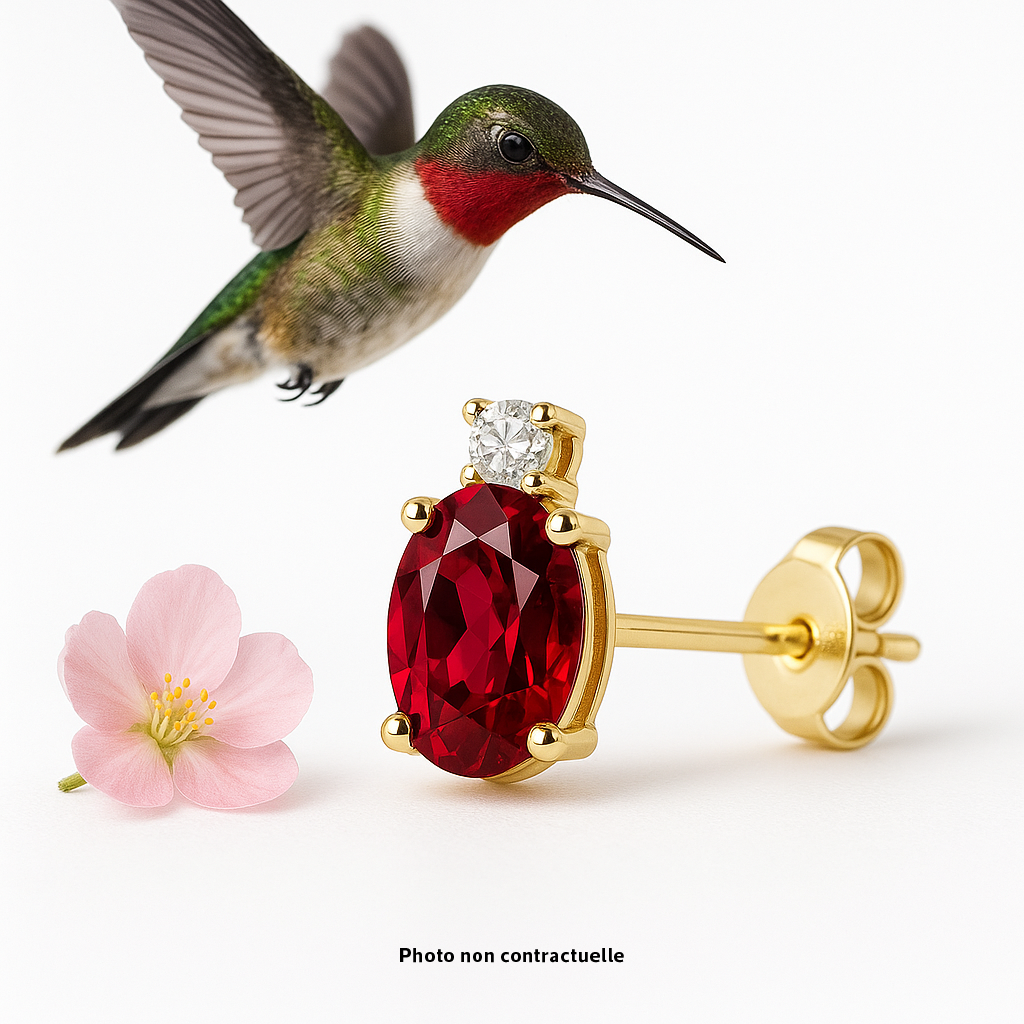 Chacun de ces rubis, taillés en ovale 4x6 mm, est sublimé par un diamant de laboratoire scintillant, pur et éthique. D’une blancheur EF et d’une clarté SI, ces diamants créés en laboratoire partagent avec leurs homologues naturels la même dureté, la même lumière, et la même éternité.