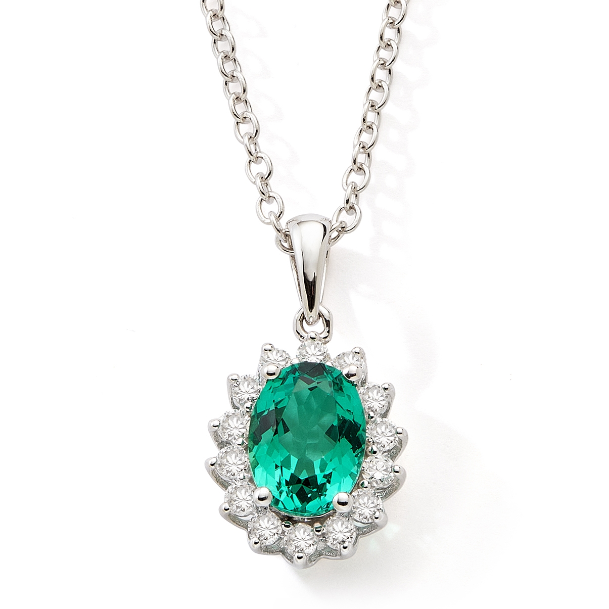 Collier 750 or gris 1 émeraude 6x8, 14 diamants